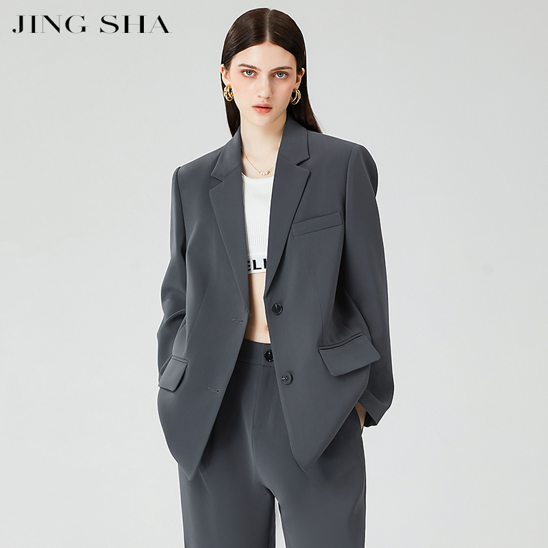 Купить Серый маленький пиджак для костюма, женский ранний весенний и осенний новый костюм-двойка, маленький высококачественный свободный повседневный костюм на таобао
