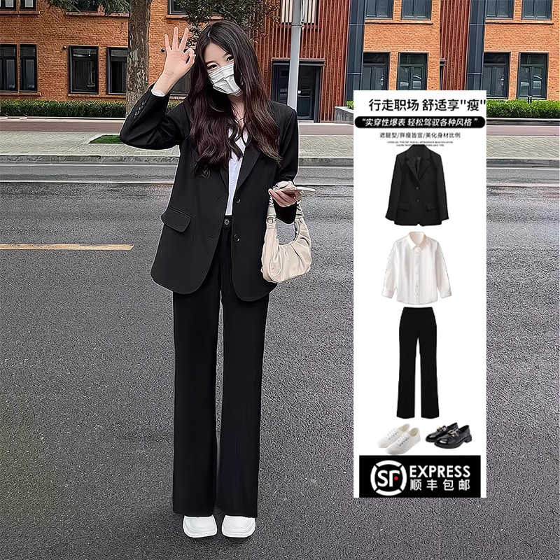 Купить Костюм женский весенне-осенний костюм студент колледжа, государственный служащий, для собеседования, профессиональная официальная одежда, черный темперамент, костюм с высоким чувством стиля на таобао