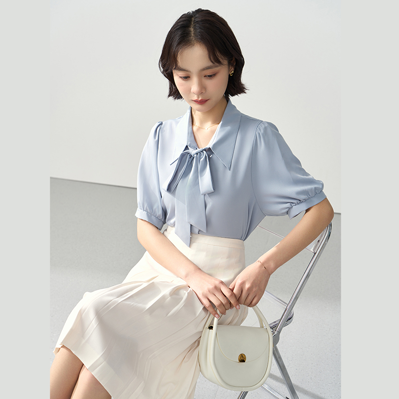 Купить Мисс Берд, голубая рубашка с короткими рукавами, женская летняя одежда для учителей, шифоновая официальная одежда, блузка для интервью, профессиональная одежда, рубашка на таобао