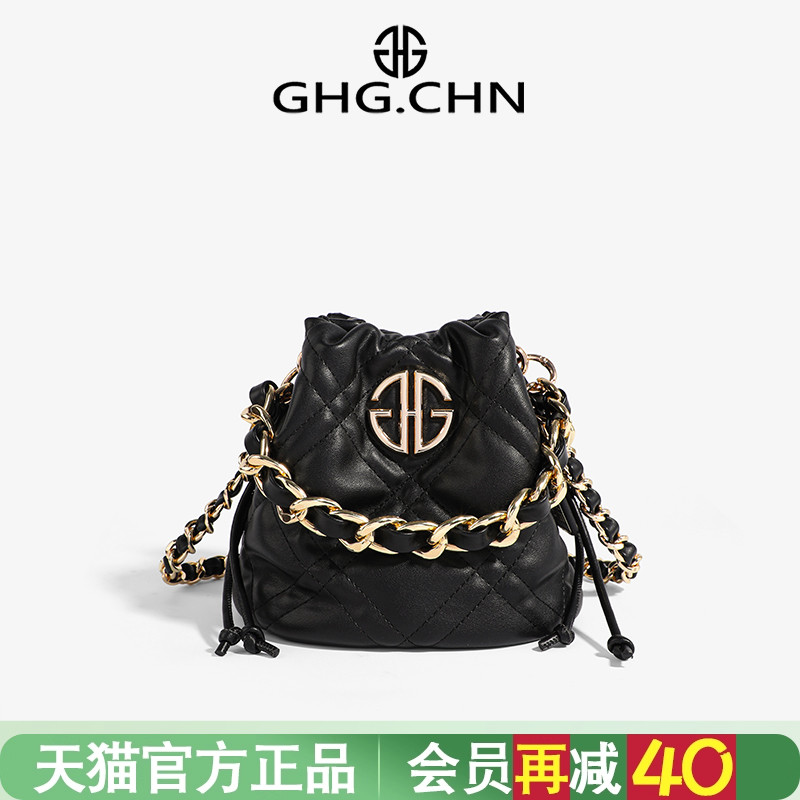 Купить Легкая роскошная воловья кожа GHG, высококлассный западный стиль, нишевая сумка-ведро на цепочке в виде ромба, женская сумка-мессенджер через плечо, черная универсальная на таобао