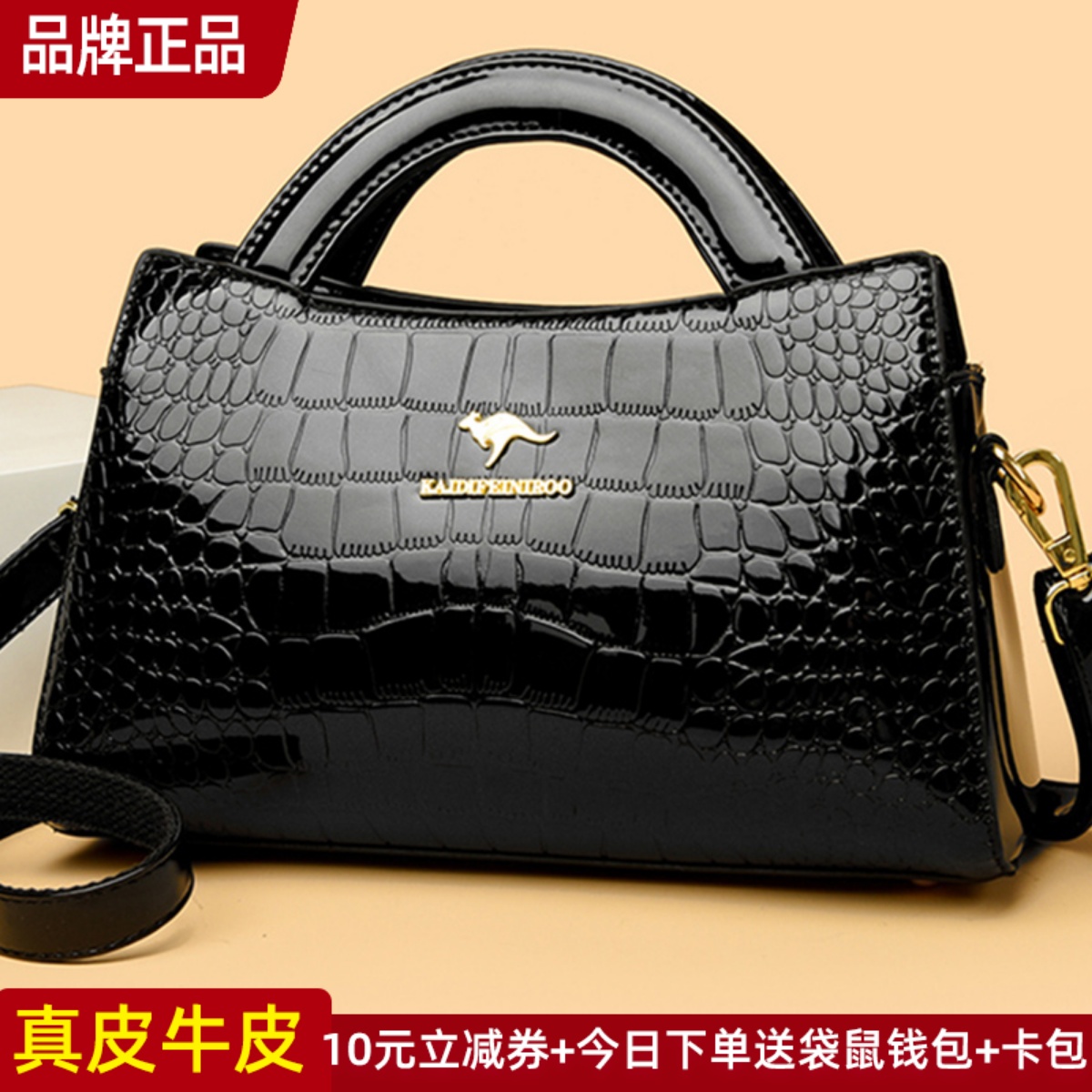 Купить Сумки из кожи кенгуру, сумки-мессенджеры, новые женские атмосферные сумки высокого класса 2025 года, глянцевые сумки через плечо из воловьей кожи на таобао