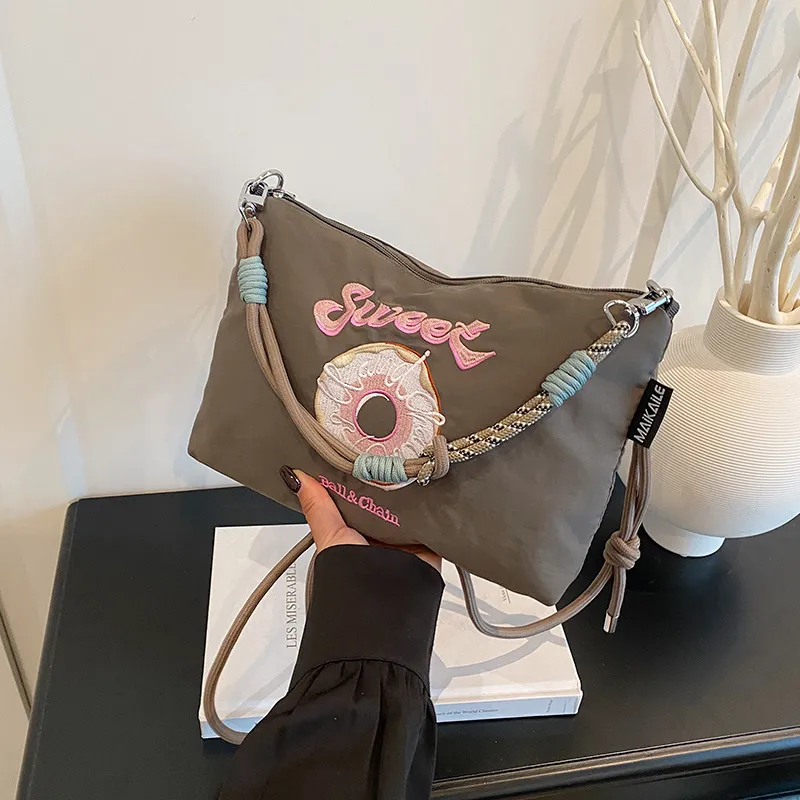 2025 новая вышитая нейлоновая сумка для покупок с вышивкой, мини-сумка для защиты окружающей среды, сумка-мессенджер через плечо, портативная маленькая сумка для мобильного телефона