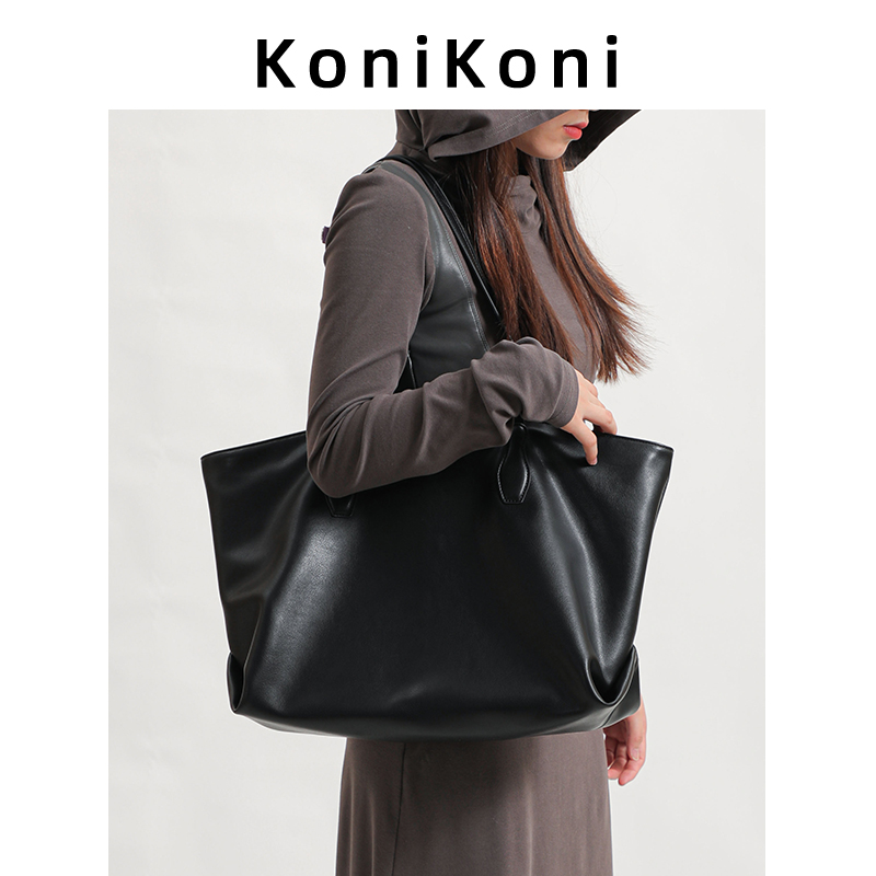 Купить Кожаная сумка-тоут для отдыха в нише KoniKoni, женская новинка 2024 года, осенне-зимняя сумка большой емкости на одно плечо на таобао