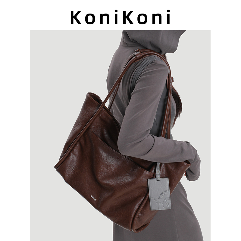Кожаная сумка-тоут для отдыха в нише KoniKoni, женская новинка 2024 года, осенне-зимняя сумка большой емкости на одно плечо