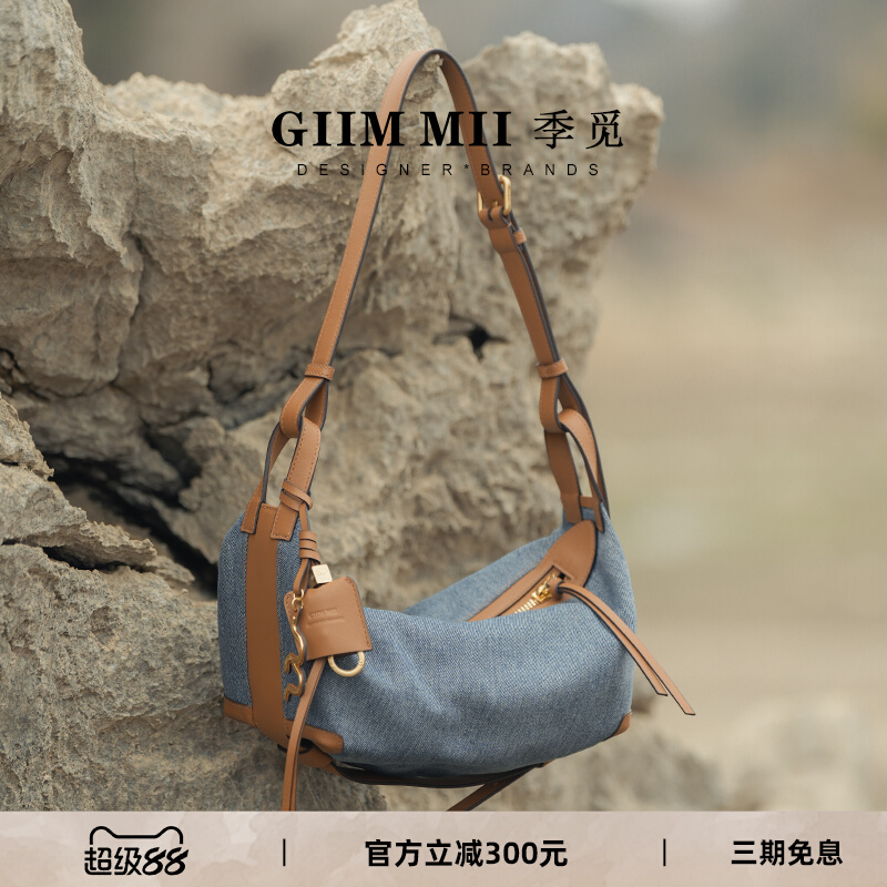 [Ван Чжэнь в том же стиле] дорожная сумка серии GIIMMII/Ji Mi Wok ear из холщовой джинсовой ткани с подушкой-мессенджером на одно плечо