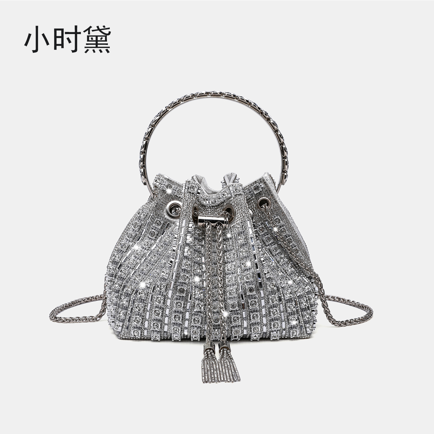 Купить Xiaodai, новинка 2025 года, женская сумка высокого класса, украшенная сверкающими бриллиантами, корзина для овощей, модная сумка-мессенджер на одно плечо с кисточками на таобао