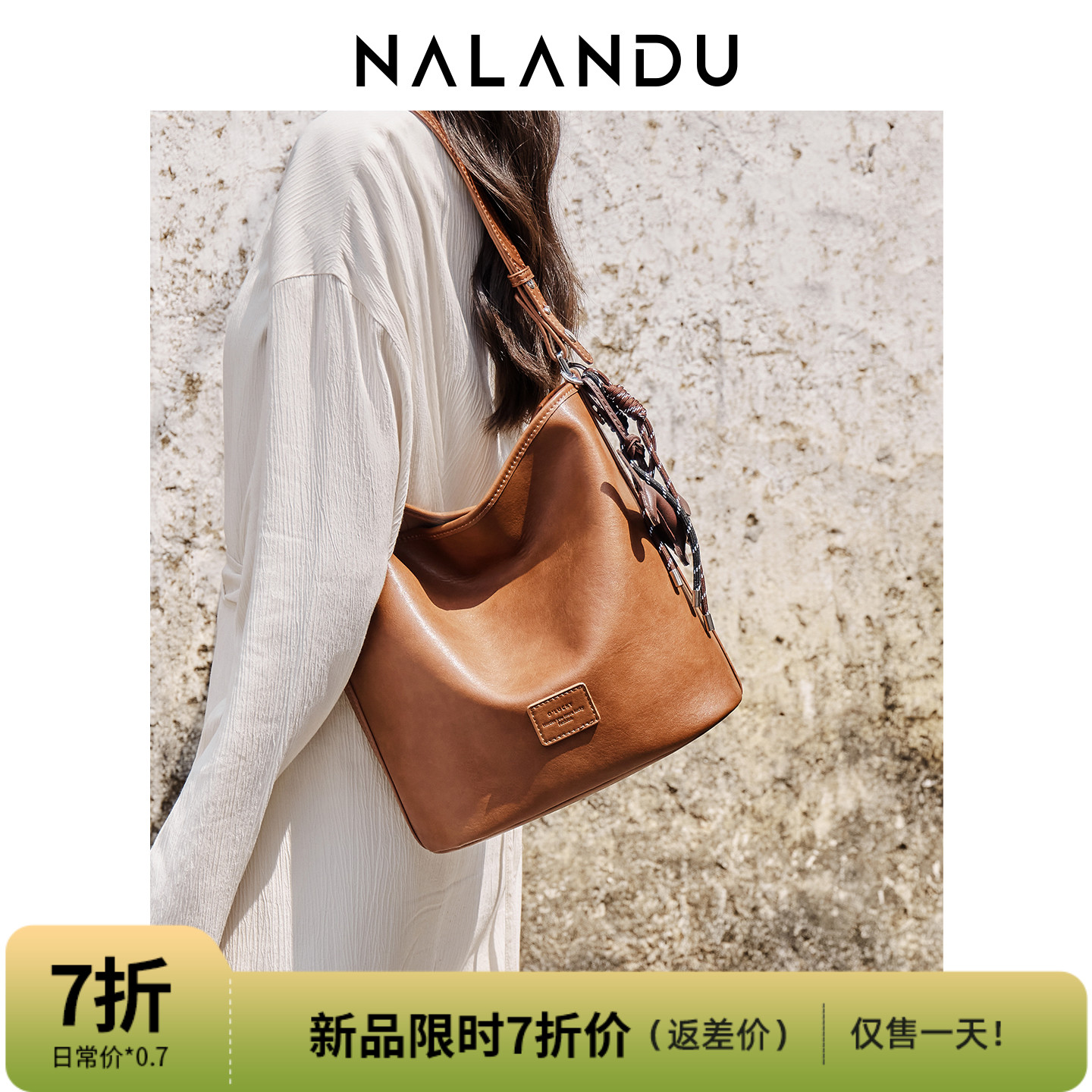 Купить NALANDU Nalandu сумка женская 2025 новая сумка-ведро большой емкости женская сумка-мессенджер через плечо кожаная женская сумка-мессенджер на таобао