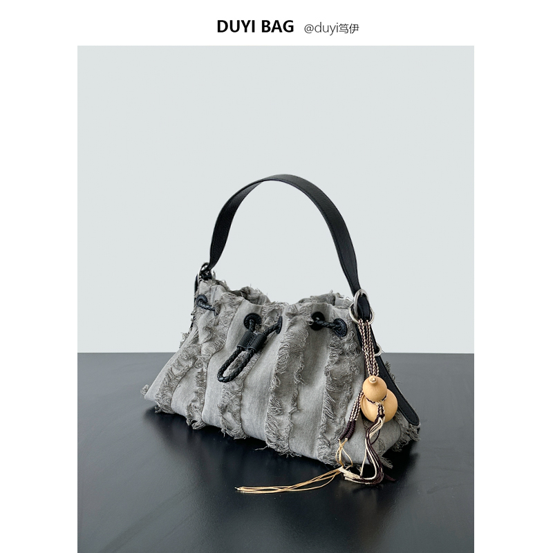 Tuyi 2025 новая сумка из воловьей кожи первого слоя с джинсовой подкладкой для подмышек, высококачественная сумка через плечо, модная сумка-тоут для пригородных поездок