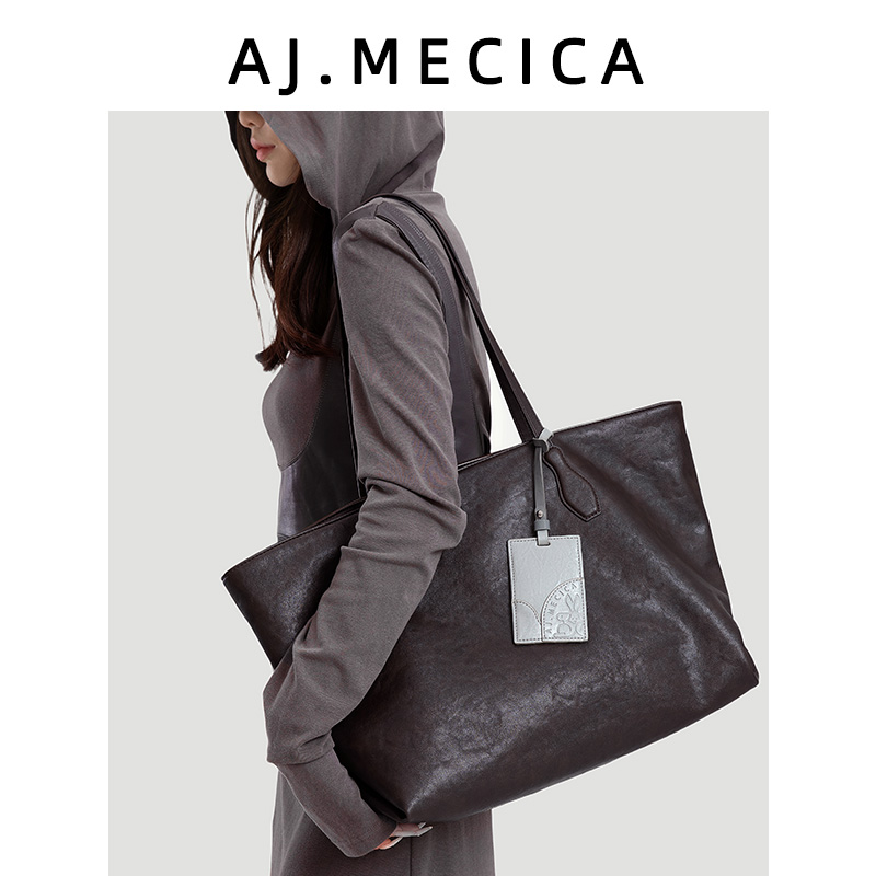 Кожаная сумка-тоут большой емкости AJMECICA, новинка 2025 года, повседневная сумка для поездок на работу, женская модная сумка на плечо, большая сумка