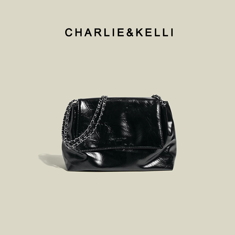 Купить Сумки CHARLIE&KELLI с черной текстурой, новинка 2025 года, модная сумка на цепочке через плечо, универсальная сумка-мессенджер ins на таобао